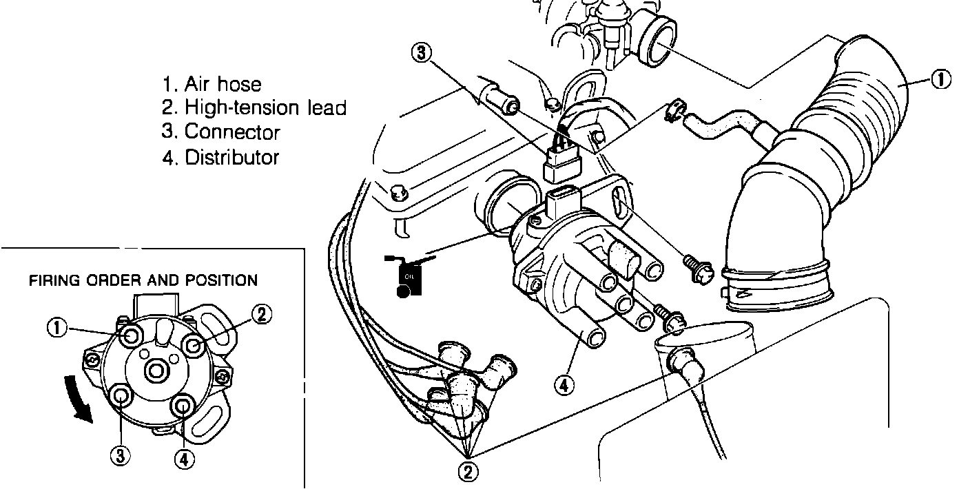 4. Remove mounting bolt and lift off distributor. Do not turn engine while distributor is removed.