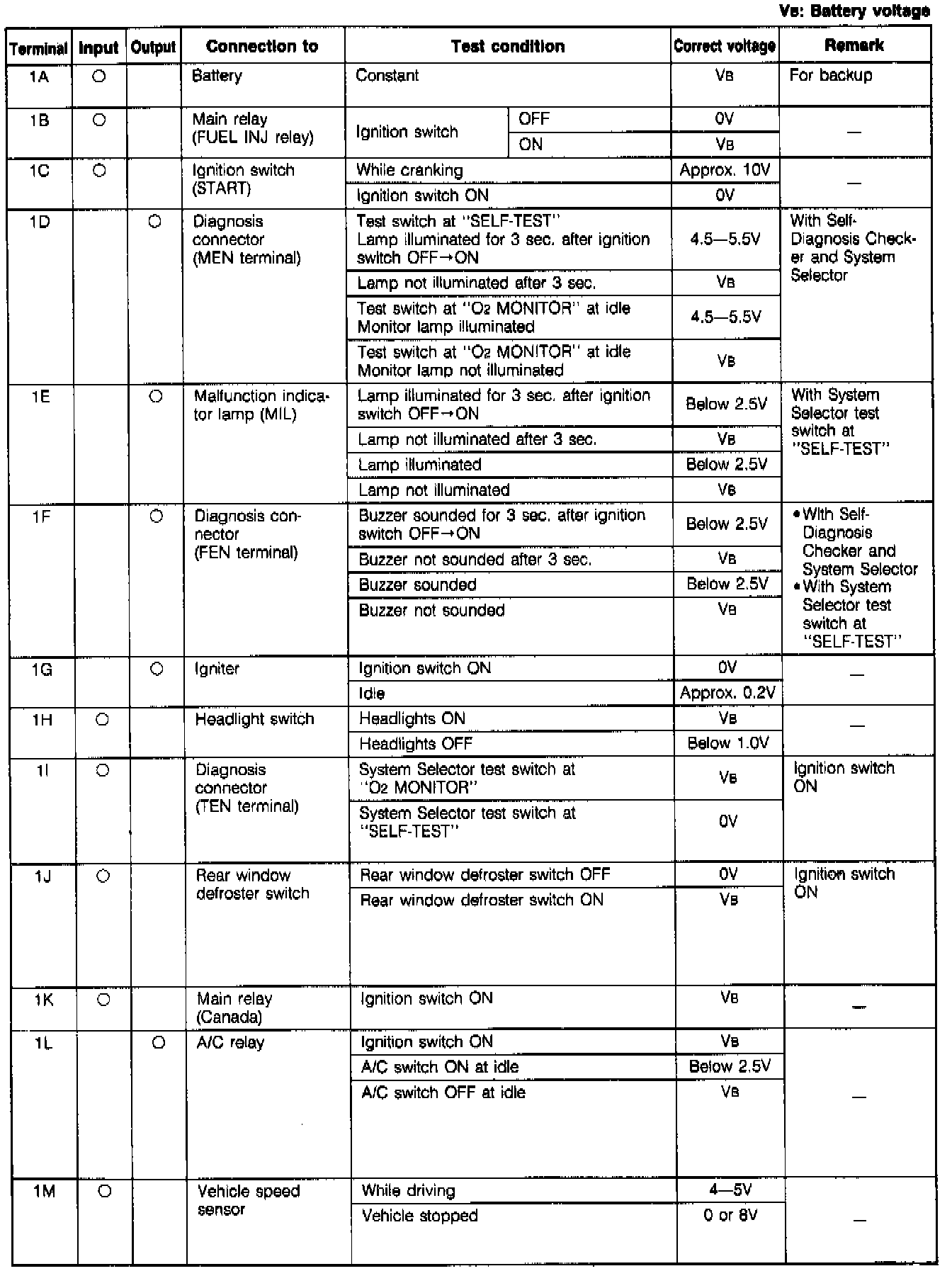 Terminal Voltage Chart: