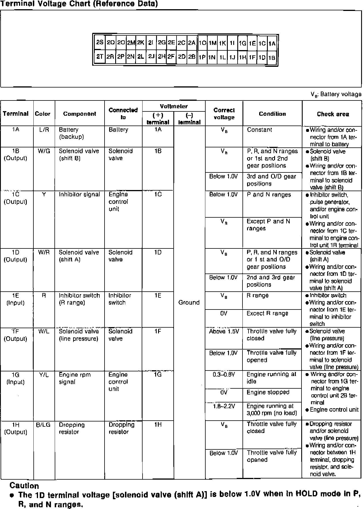 Automatic Transmission Terminal Voltage Chart: