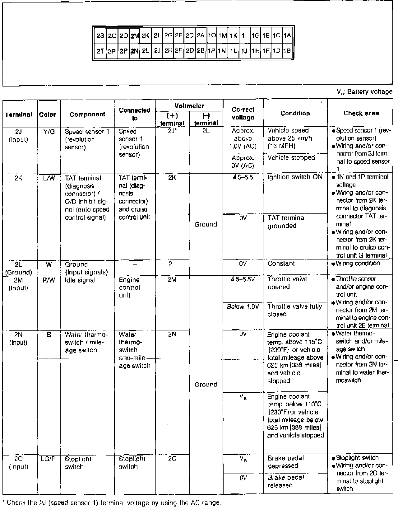 Automatic Transmission Terminal Voltage Chart:
