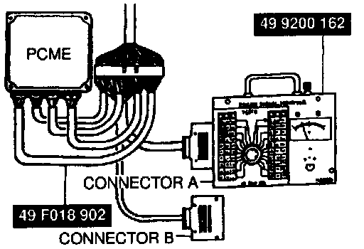 1. Connect the special service tools SSTs to the powertrain control module engine (PCME) as shown.