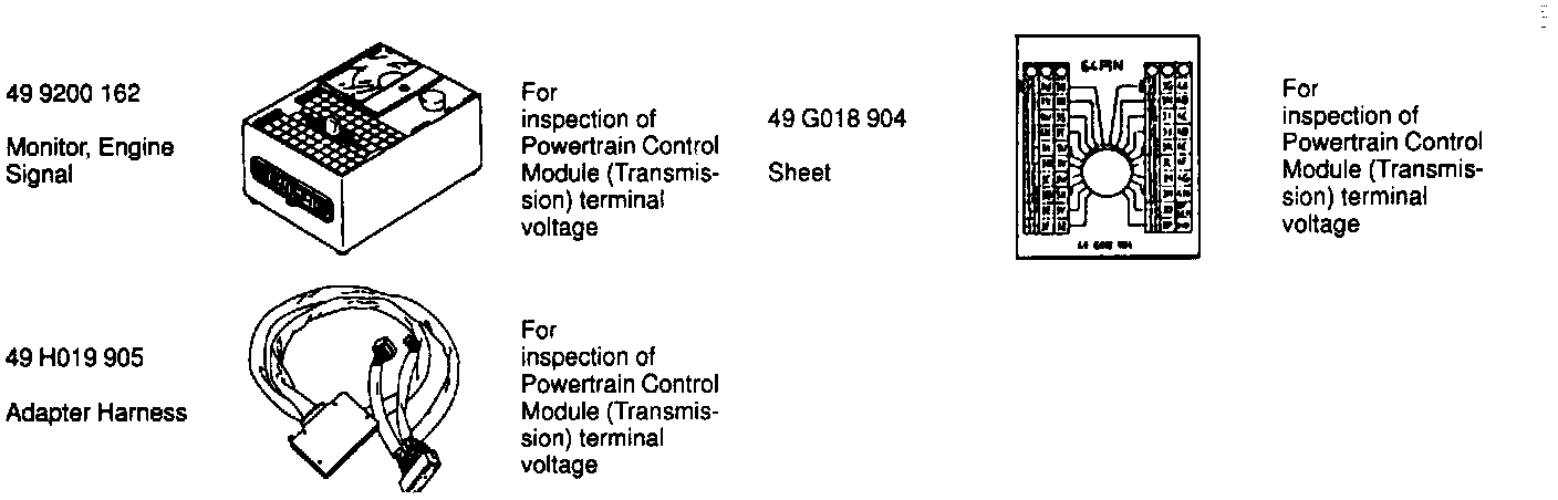 3. Connect the SSTs (Engine Signal Monitor and Adapter Harness) to the powertrain control module (transmission) as shown.