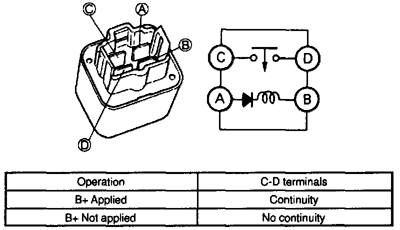 2. Apply battery positive voltage and ground to terminals A and B of the main relay.