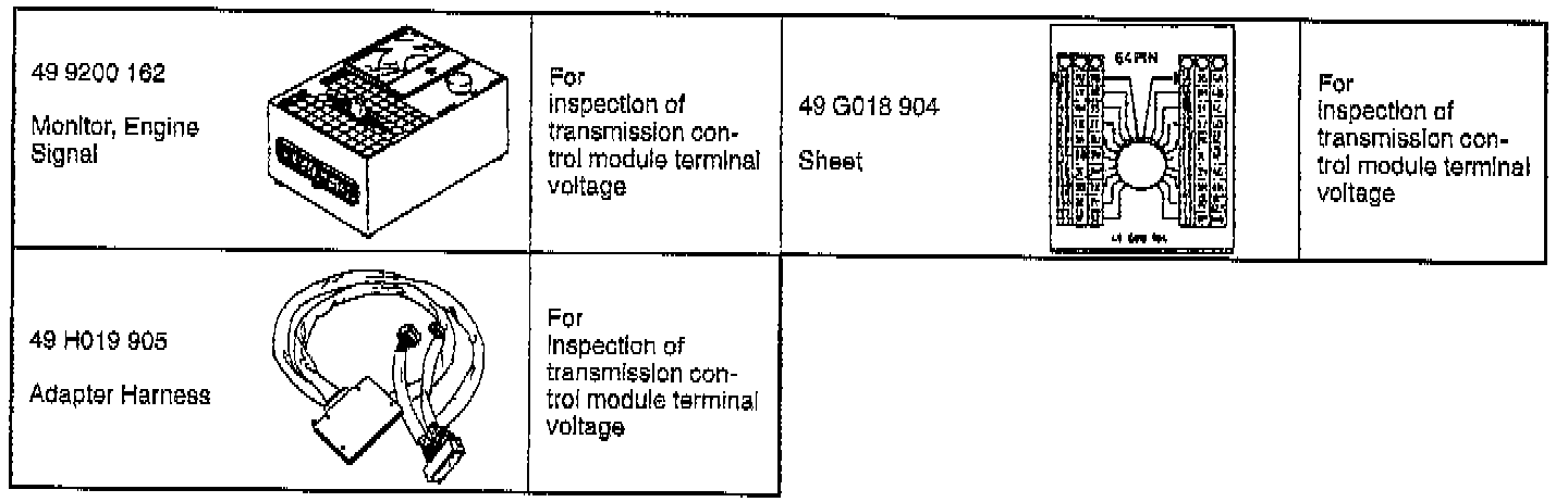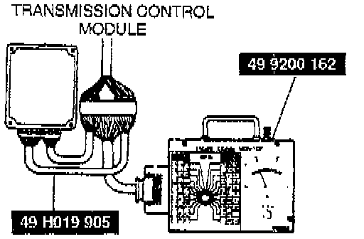 3. Connect the SSTs (Special Service Tool) (Engine Signal Monitor and Adapter Harness) to the transmission control module as shown.