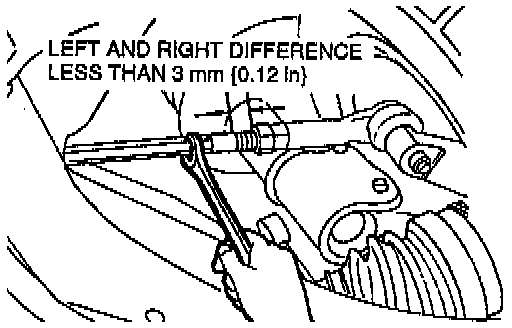 2. Loosen the left and right tie rod locknuts, and turn the tie rods equally to provide the correct maximum steering angle. Maximum left/right difference is 3 mm (0.12 inch).