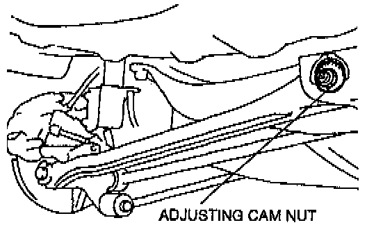NOTE: Turning the adjusting cam bolt one graduation changes the toe-in about 3.2 mm (0.13 inch) (0.30°).