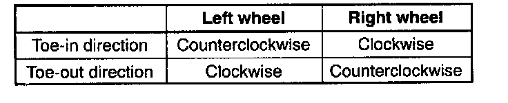 3. Turn the adjusting cam bolt as indicated to adjust the toe-in.
