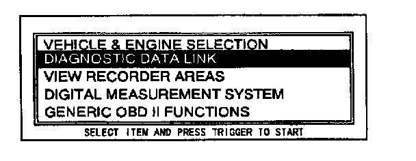 13. Move the cursor to DIAGNOSTIC DATA LINK on the main menu screen.