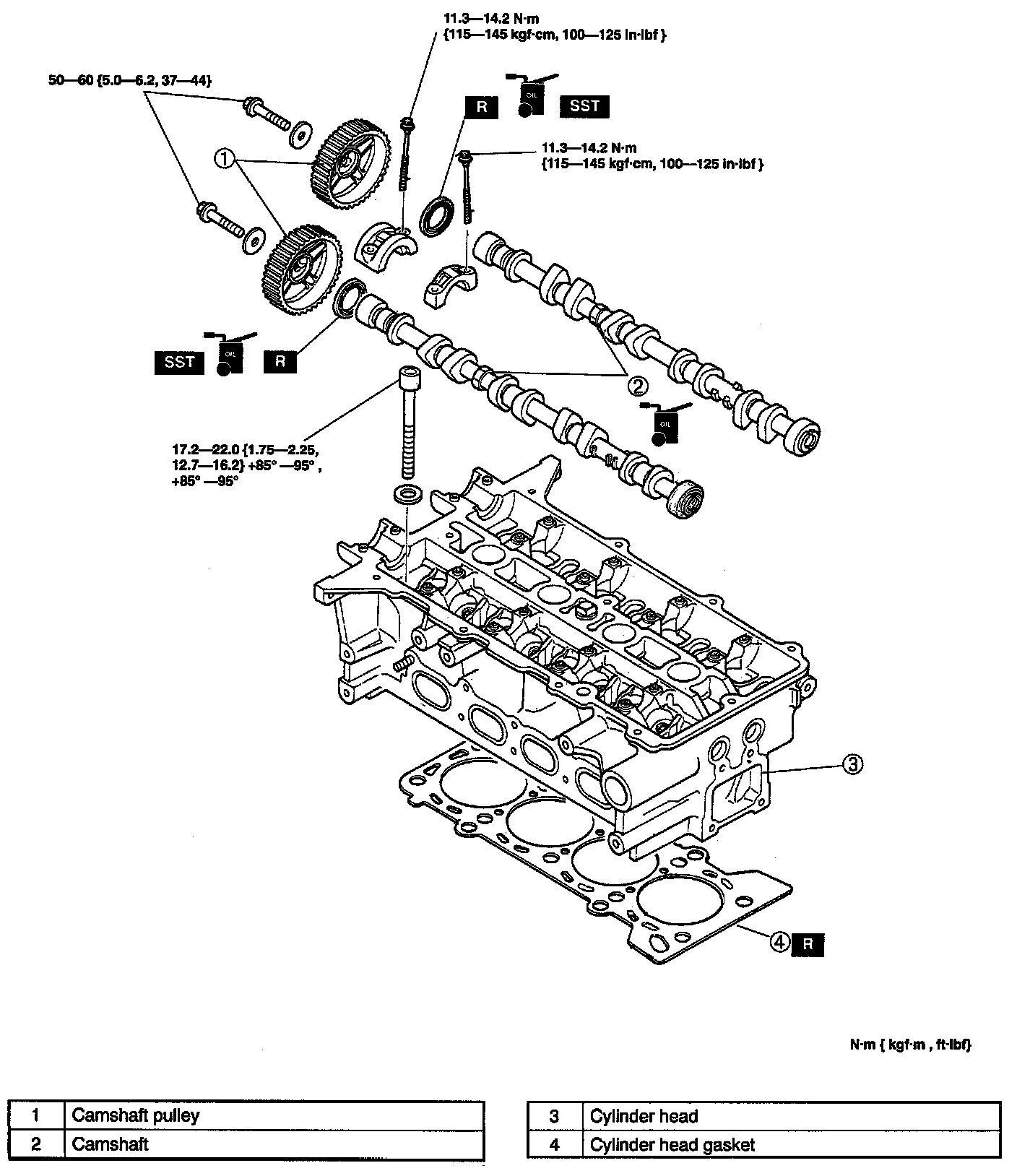 Tightening torque: 17.2 - 22.0 Nm (1.75 - 2.25 kgs.cm, 12.7 - 16.2 ft. lbs.)