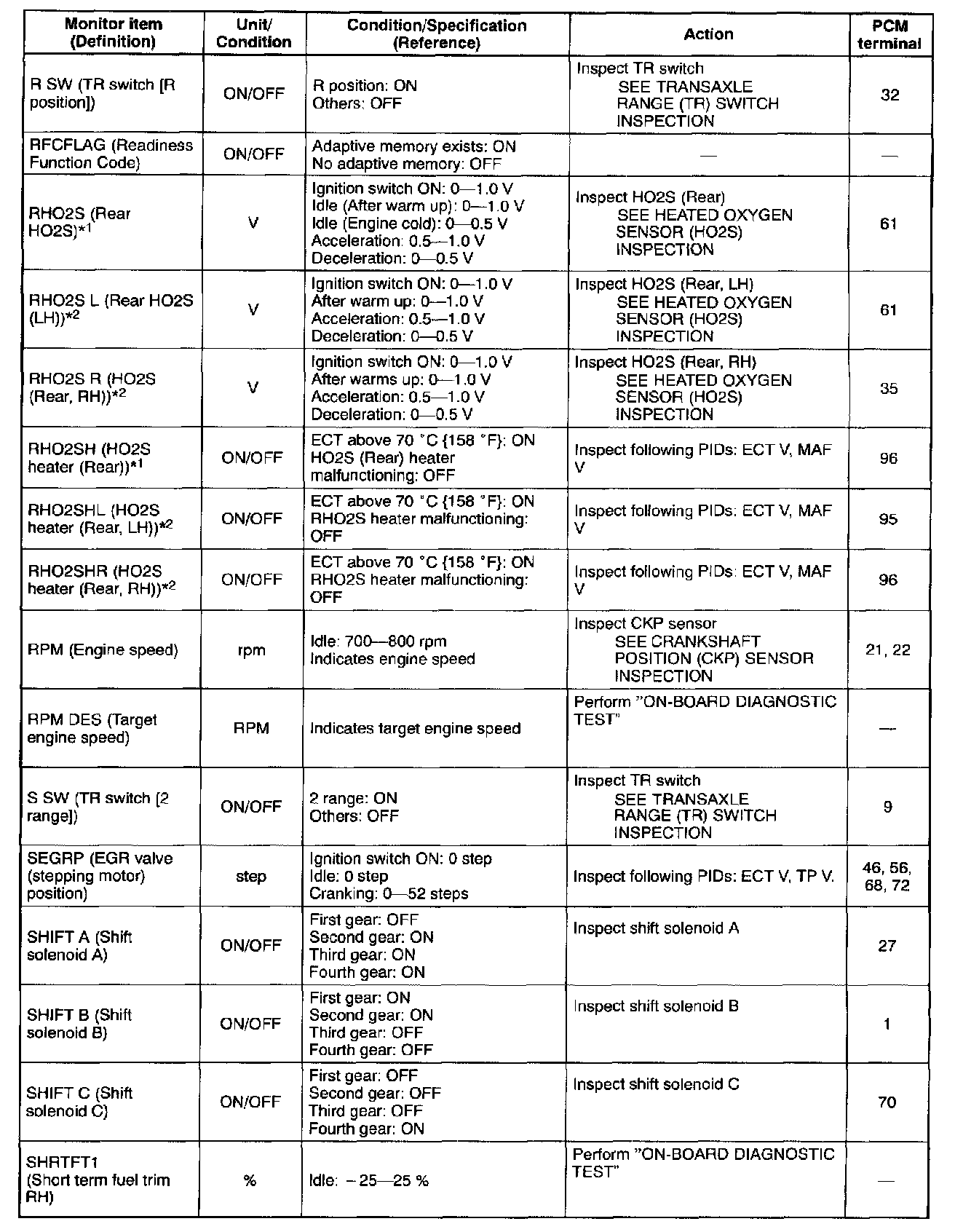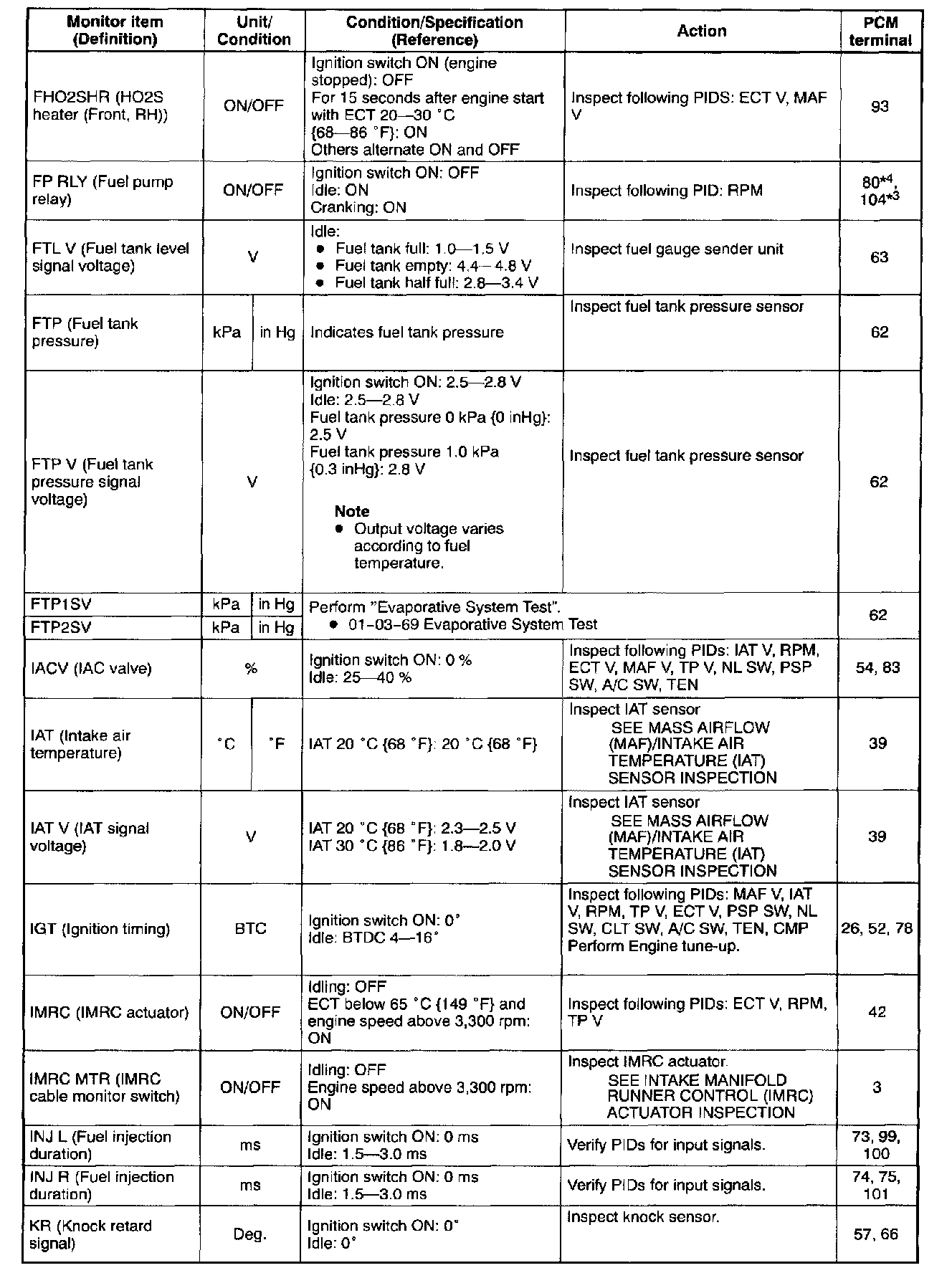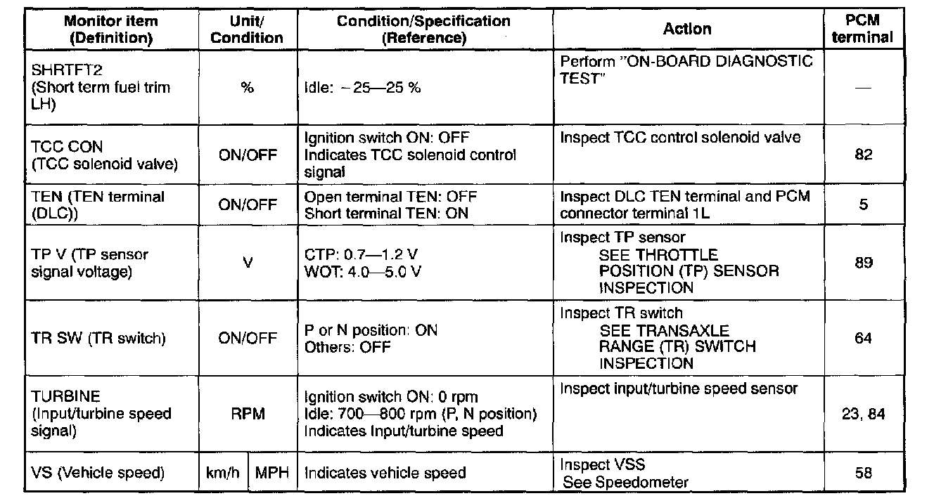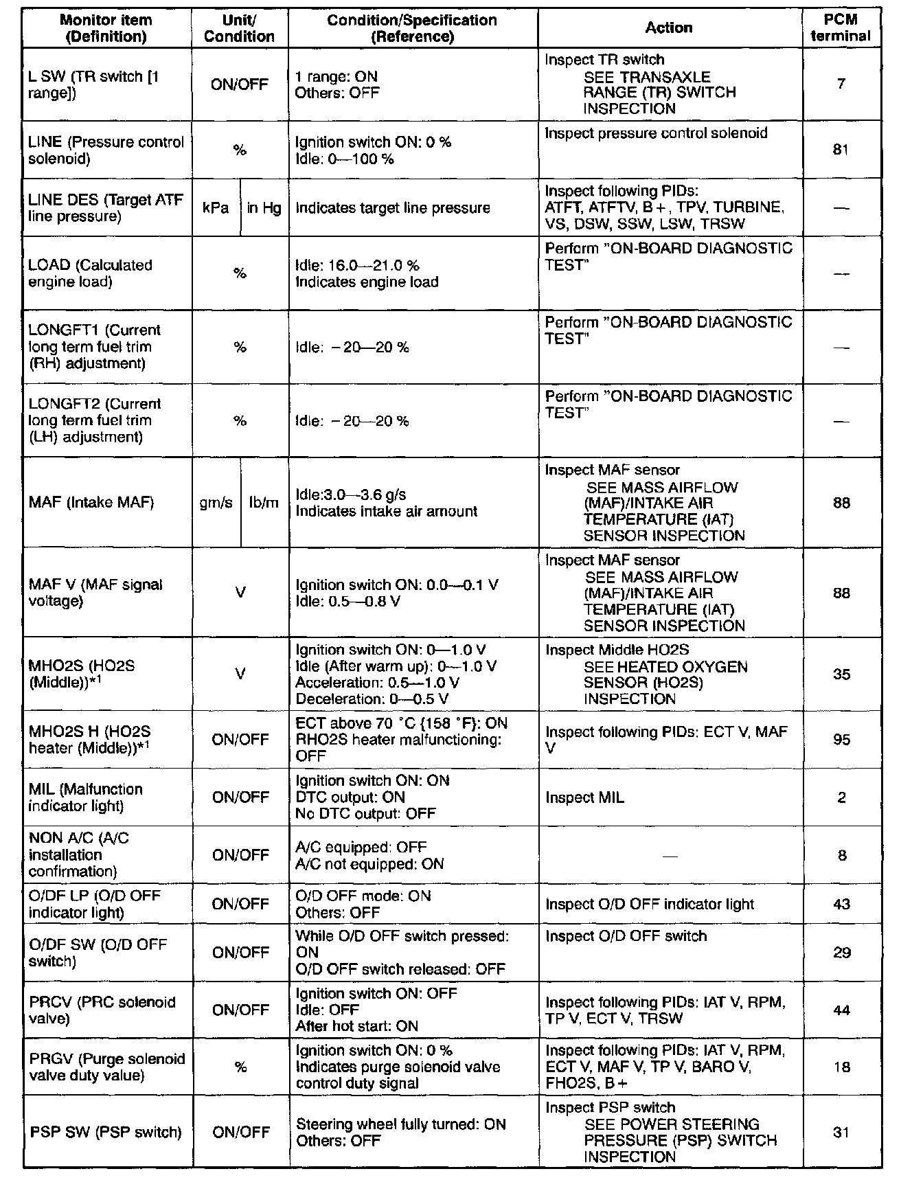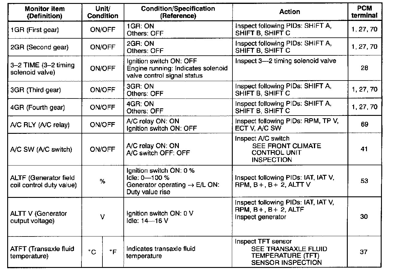 PID/DATA Monitor Table (Reference) (Part 3 Of 6):