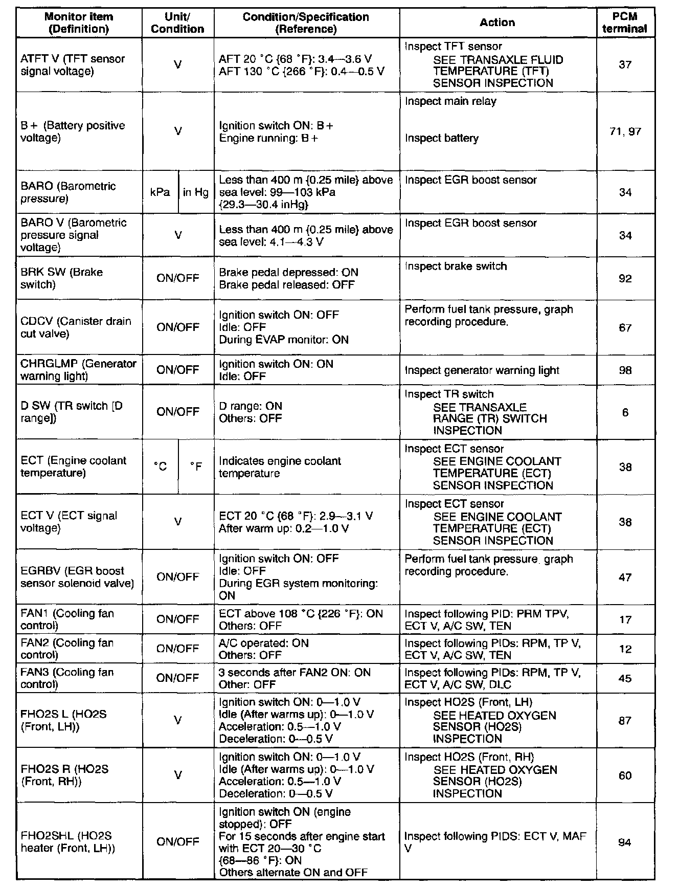 PID/DATA Monitor Table (Reference) (Part 4 Of 6):