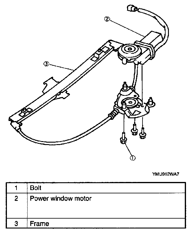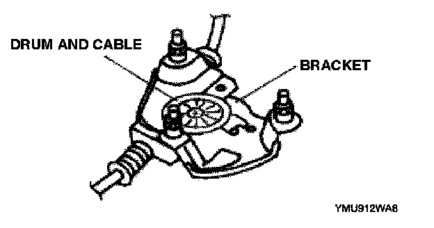 1. Hold the drum and the cable with the bracket to prevent them from being pulled out with the power window motor.