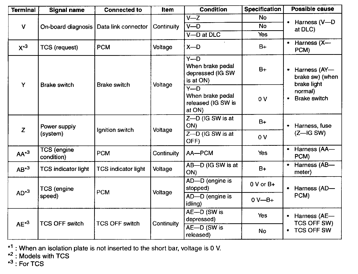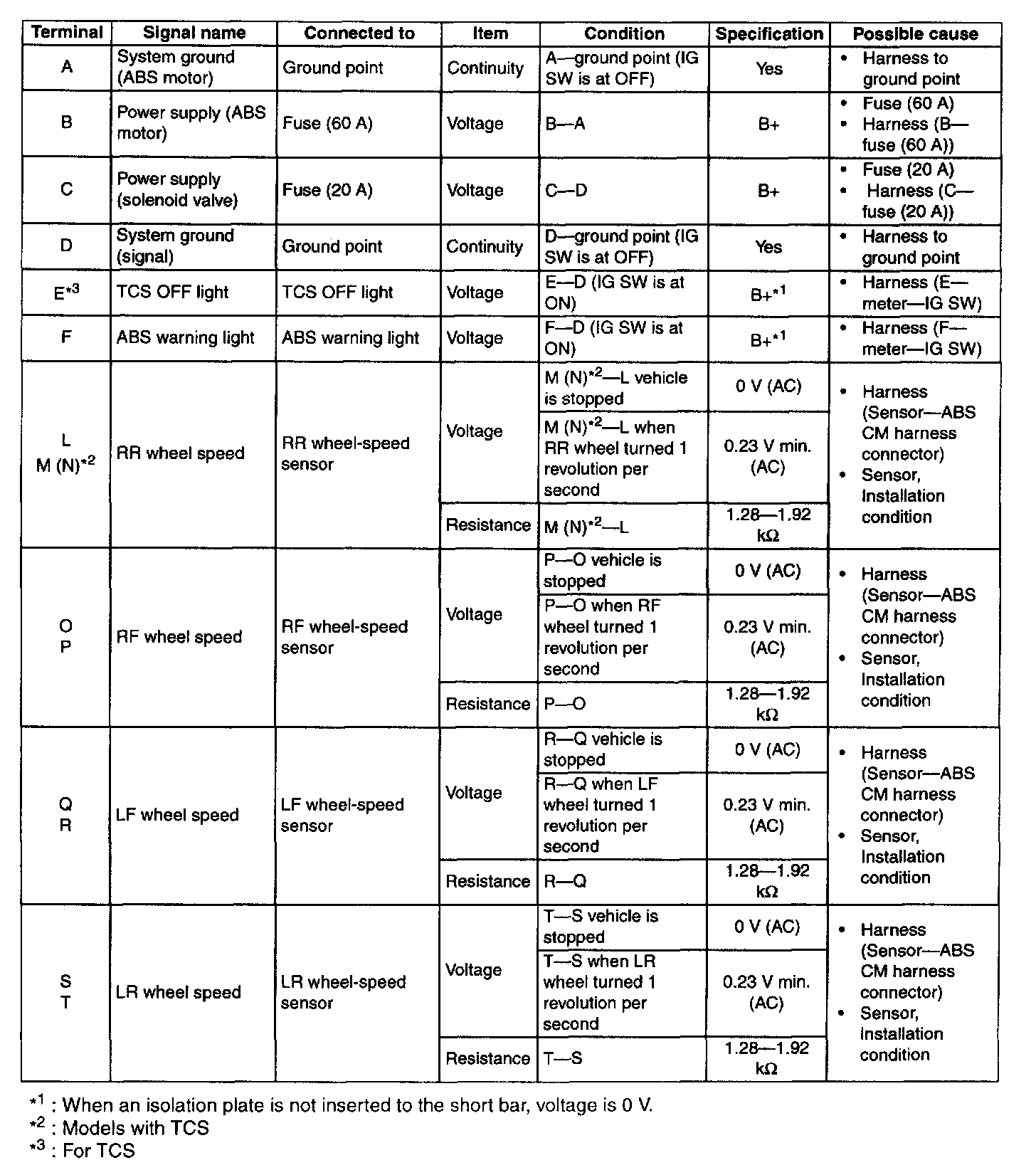 ABS Control Module Terminal Pinouts: