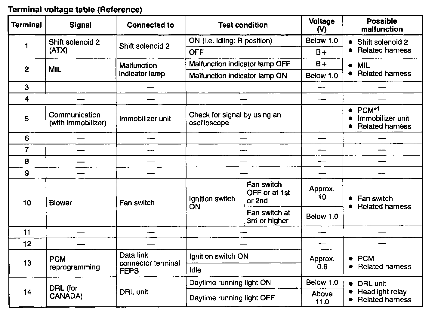 *1 the immobilizer unit functions normally, replace the PCM.