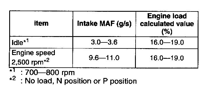 - If not as specified, perform the "MAF Sensor Circuit Open/Short Inspection".