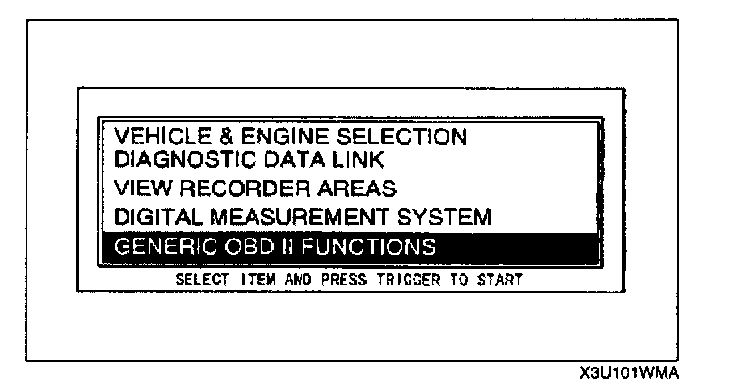 2. Move the cursor to GENERIC OBD II FUNCTIONS.