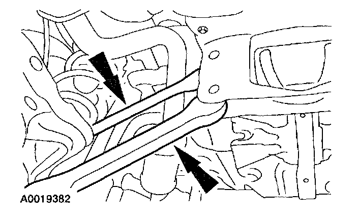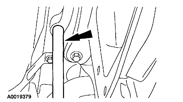 2. With a 19 mm (0.76 in) rod, align the rear subframe with the alignment holes.