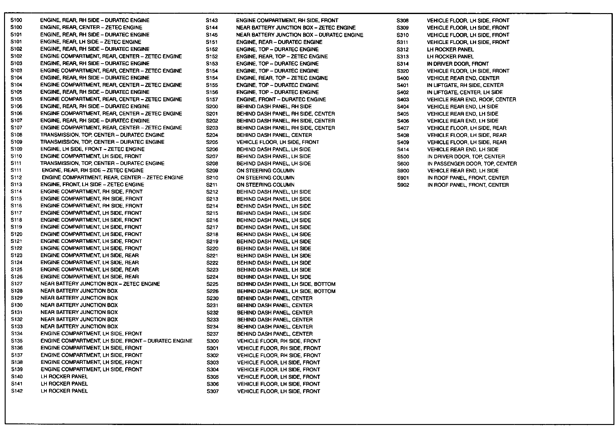 X-2 - Splice Location List: