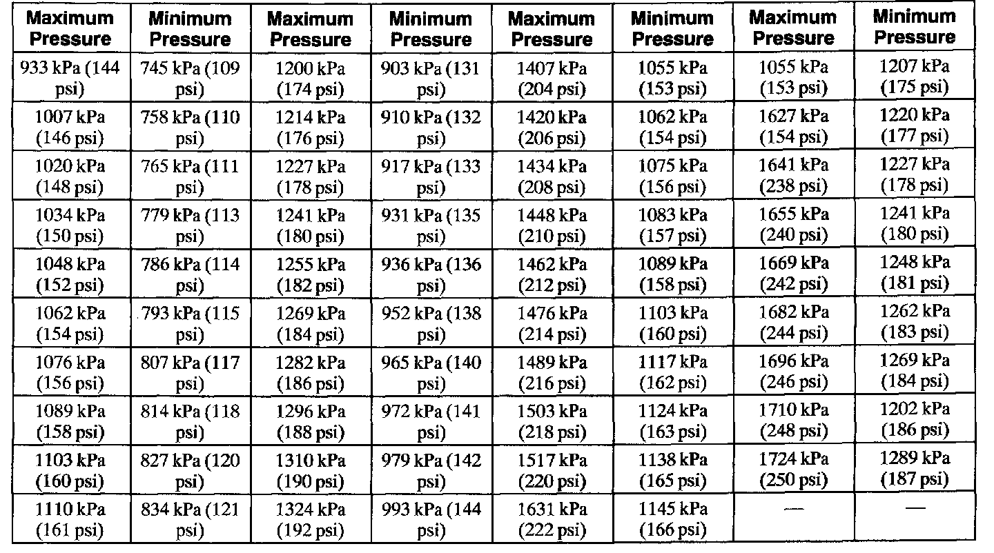 The indicated compression pressures are considered within specification if the lowest reading cylinder is within 75 percent of the highest reading. Refer to the Compression Pressure Limit Chart.
