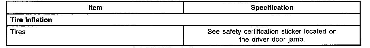 General Specifications - Tire