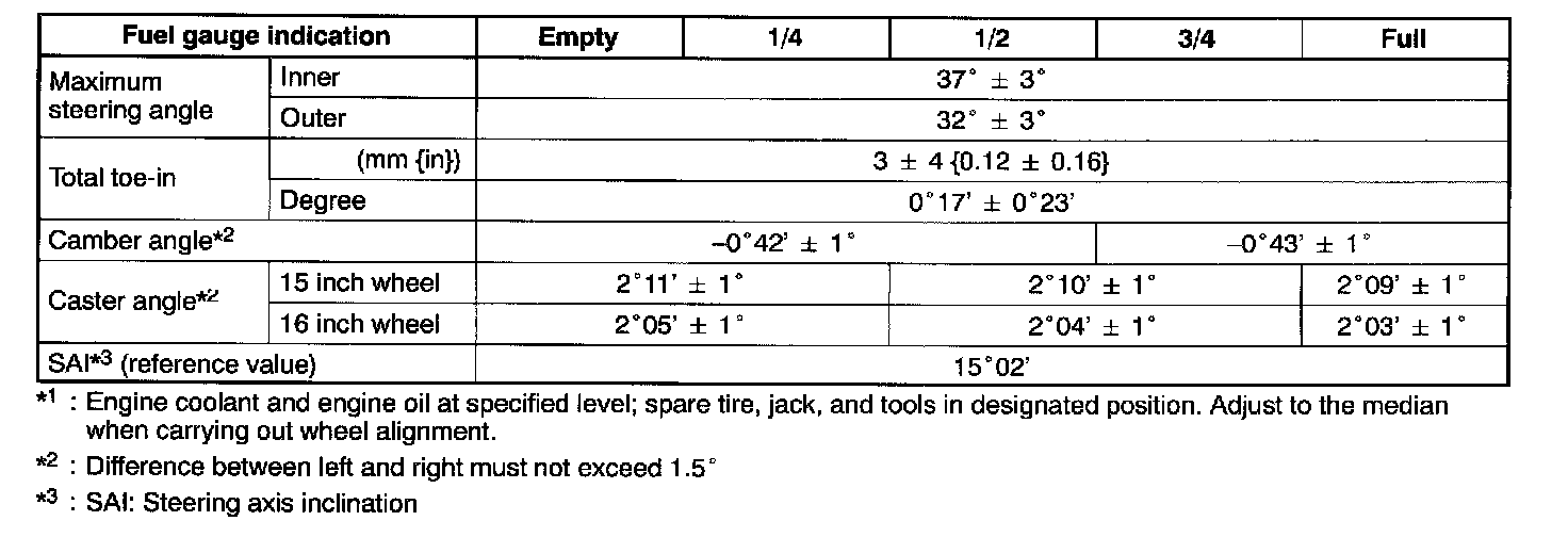 ^ Turning both tie rods one complete turn changes toe-in by about 6 mm (0.24 inch) (0° 36').