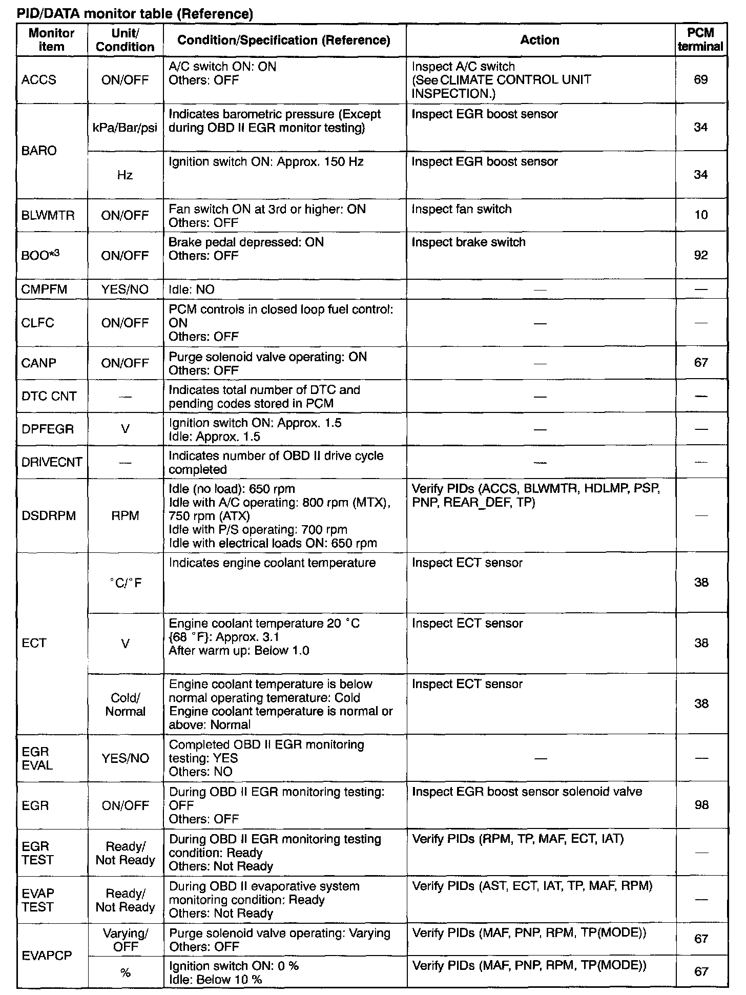- PIDs for the following pats are not available on this model. Go to the appropriate part inspection.