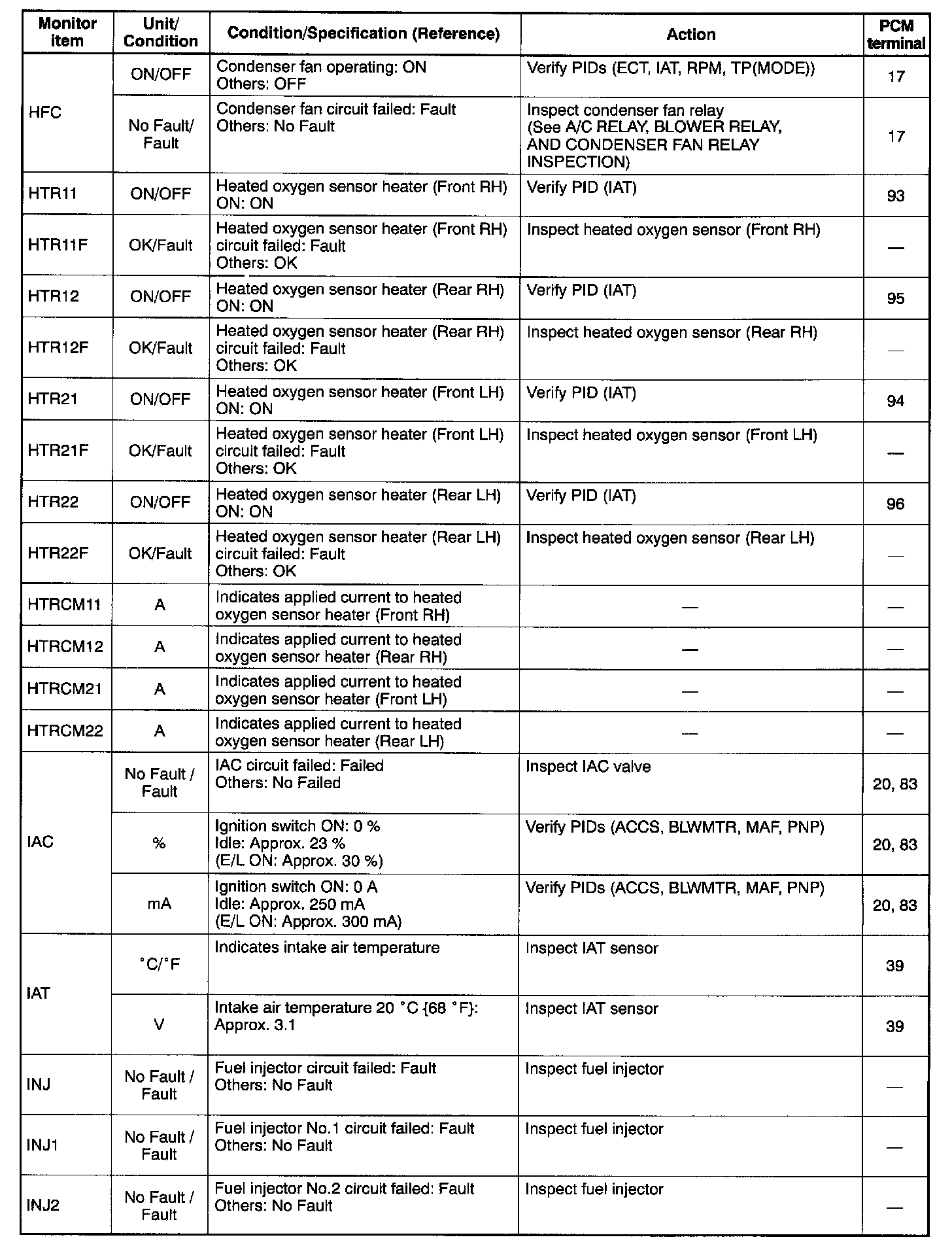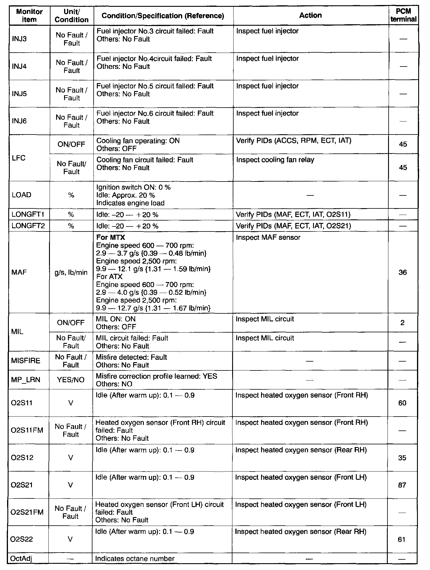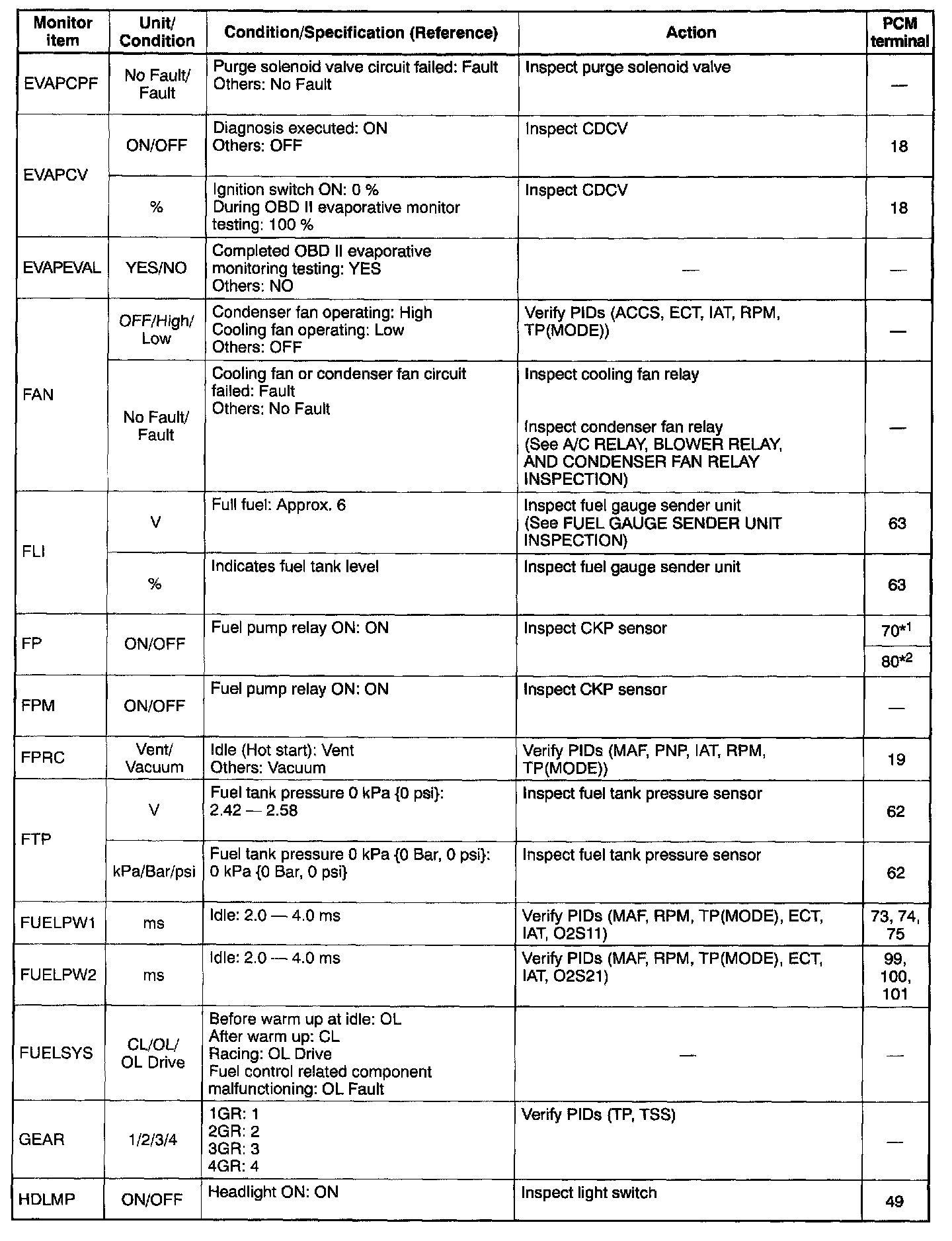 Home >> Mazda >> 2002 >> 626 ES V6-2.5L DOHC >> Repair and Diagnosis >> Powertrain Management >> Computers and Control Systems >> Testing and Inspection >> Scan Tool Testing and Procedures >> Normal Scan Data Values >> Using SST (WDS or Equivalent)