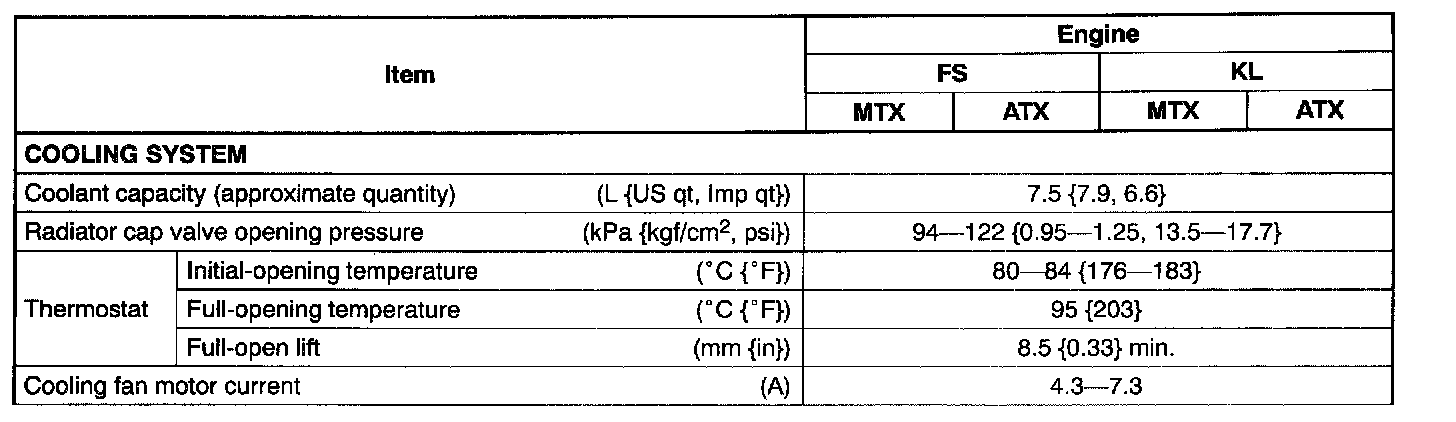 Engine Technical Data - Cooling System: