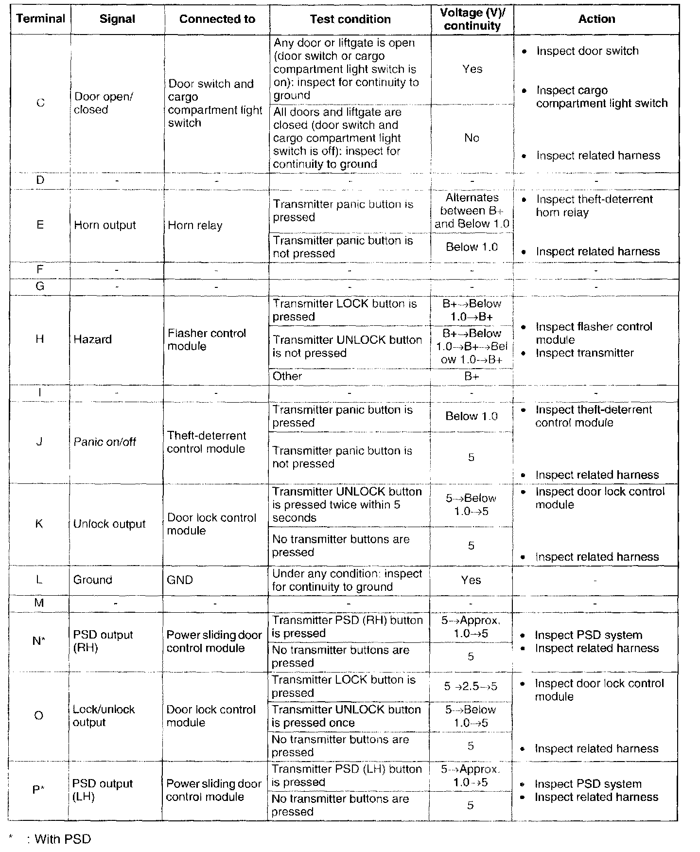 Home >> Mazda >> 2002 >> MPV V6-3.0L DOHC >> Repair and Diagnosis >> Body and Frame >> Locks >> Keyless Entry >> Keyless Entry Module >> Testing and Inspection >> Component Tests and General Diagnostics