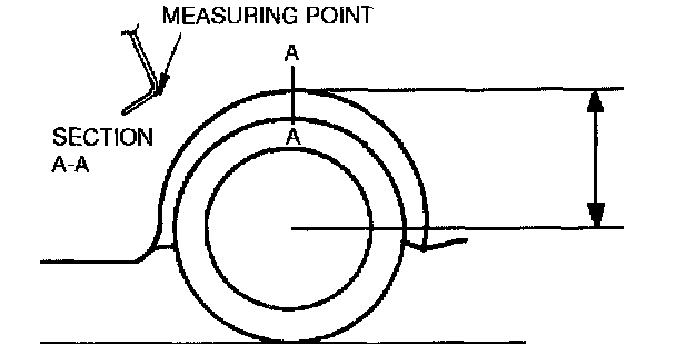 6. Measure the height from the center of the wheel to the fender brim. The difference between the left and right measurement must not exceed 10 mm (0.39 inch).