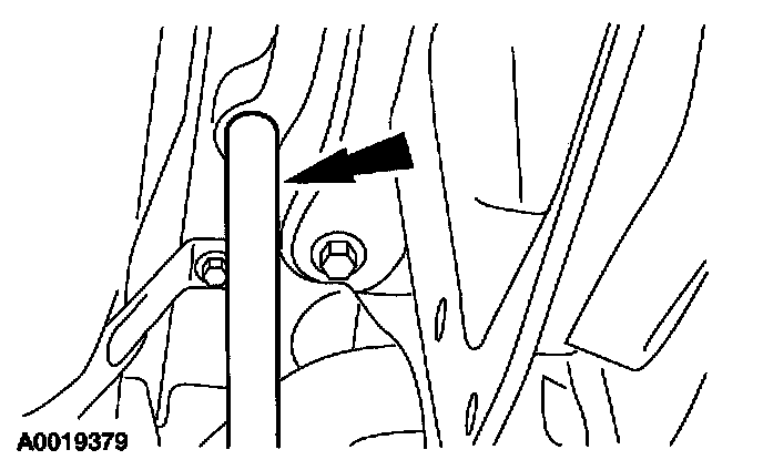 2. With a 19 mm (0.76 in) rod, align the rear subframe with the alignment holes.