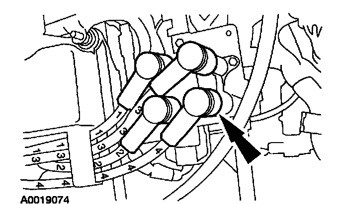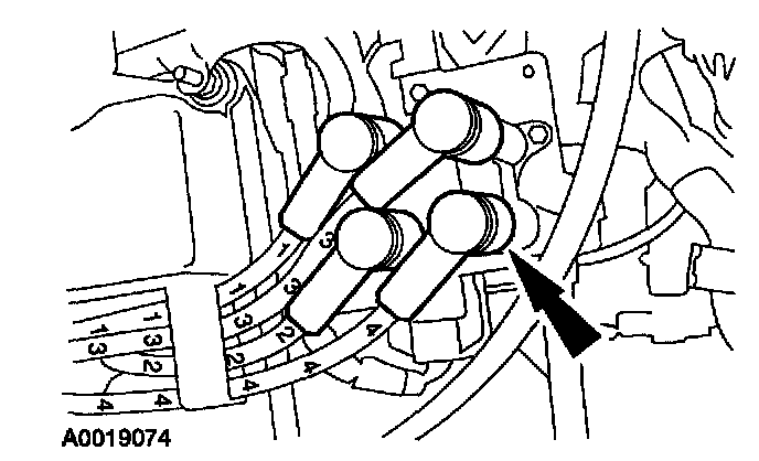CAUTION: Correct installation of the ignition wires is critical to engine operation. If one spark plug wire is not correctly installed at either the spark plug or the Ignition coil, both spark plugs connected to the ignition coil may not fire under load.