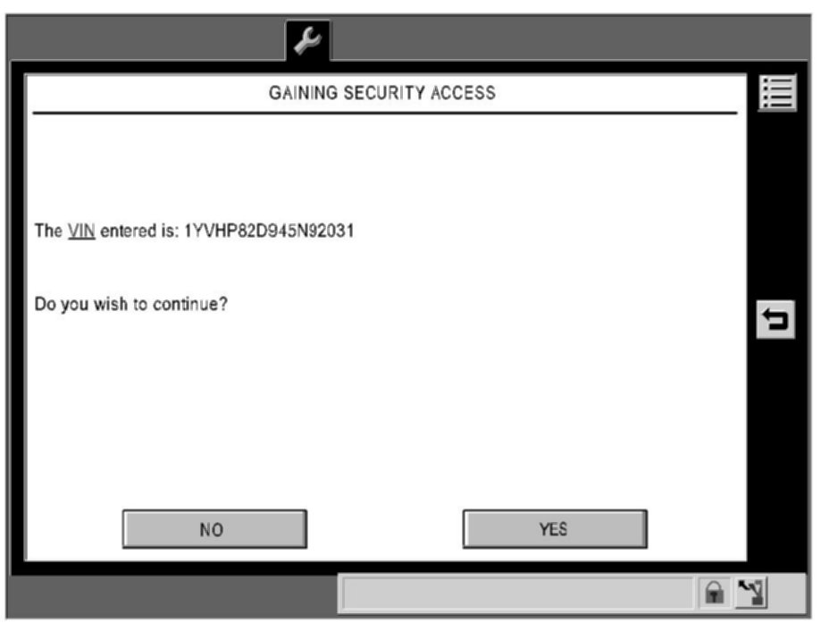 ^ If displayed VIN is not appropriate, choose "NO" and enter a correct VIN on the next screen.