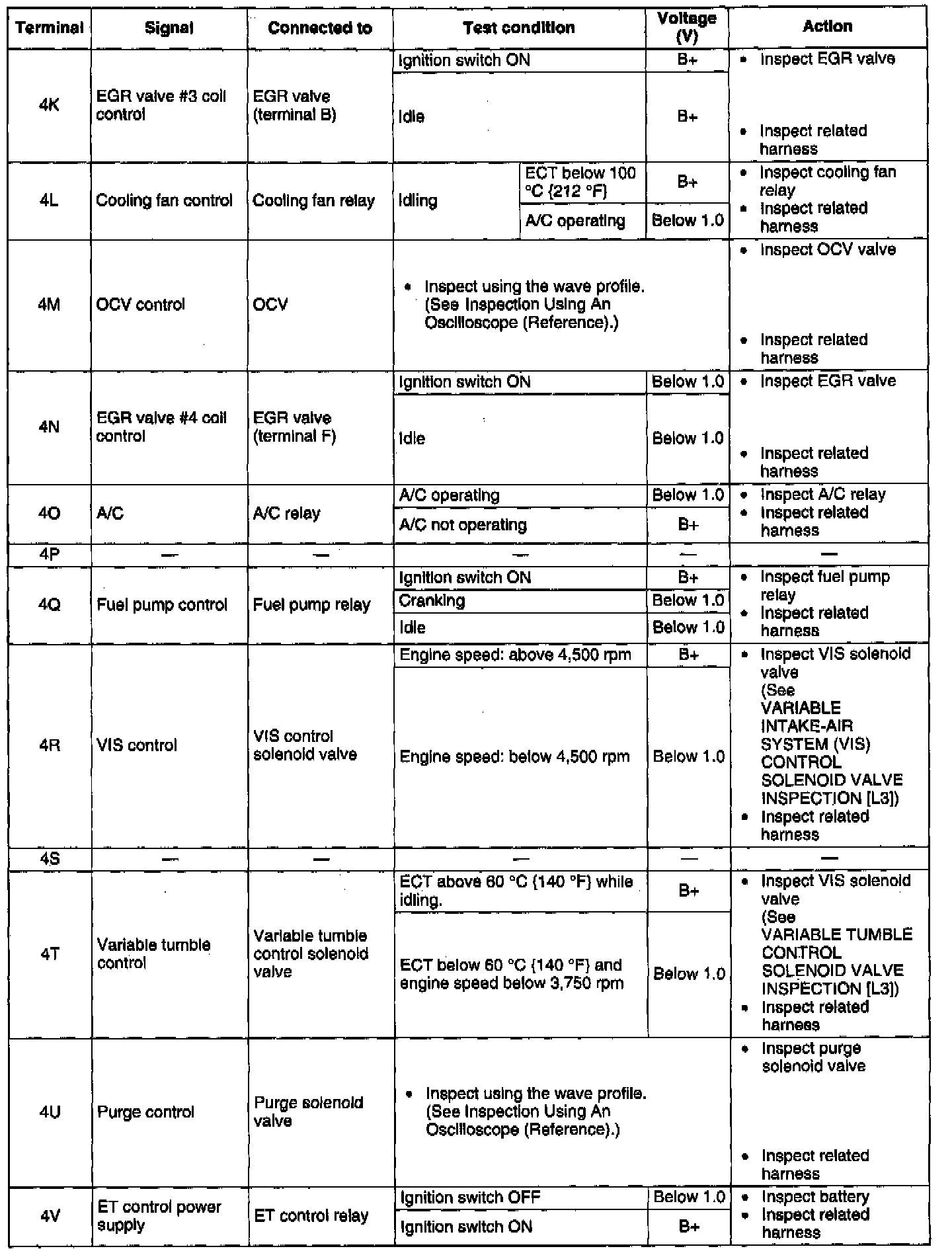 Terminal Voltage Table (Reference) - Terminals (4K - 4V):