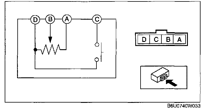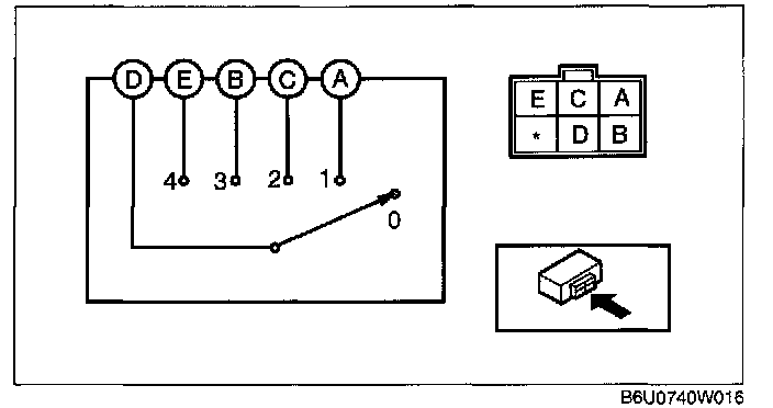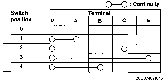 3. Verify that the resistance between the terminals of the mode switch is as shown in the table.