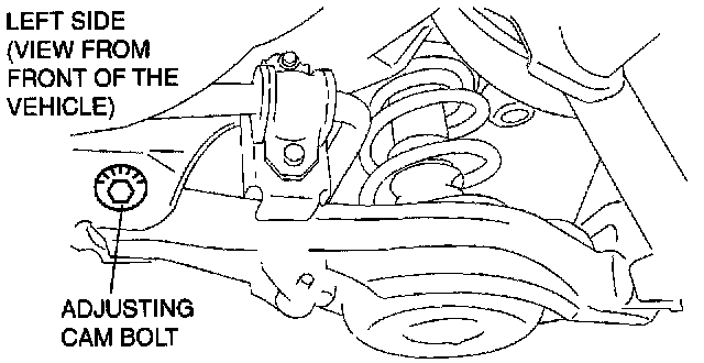 2. Turn the adjusting cam bolt to provide the correct camber angles as indicated. Left wheel Right wheel Positive direction Clockwise Counter Negative direction Counter- Clockwise