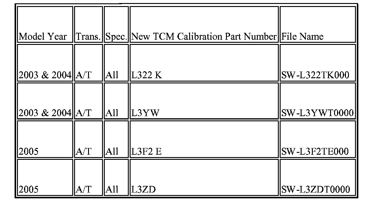 4. Perform the TCM reprogramming procedure and reprogram the TCM to the latest available calibration (refer to the "Calibration Information" table). Verify the repair by starting the engine and making sure there are no MIL illumination or abnormal warning lights present.