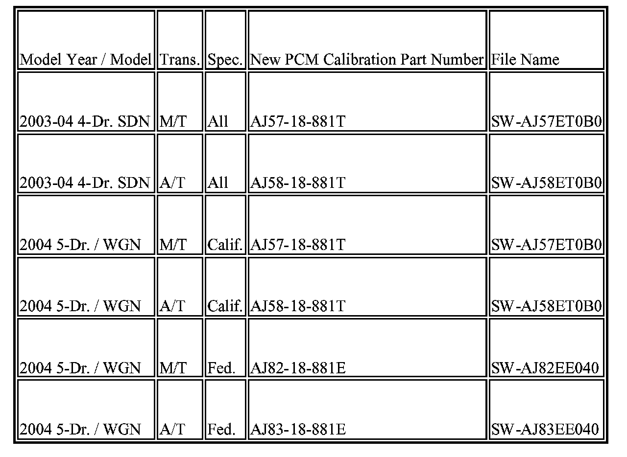 ^ Please be aware that PCM calibration part numbers and file names listed in any Service Bulletin may change due to future releases of WDS software, and additional revisions made to those calibrations for service related concerns.