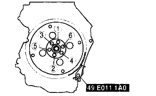 Tighten the drive plate mounting bolts in two or three steps in the order shown.