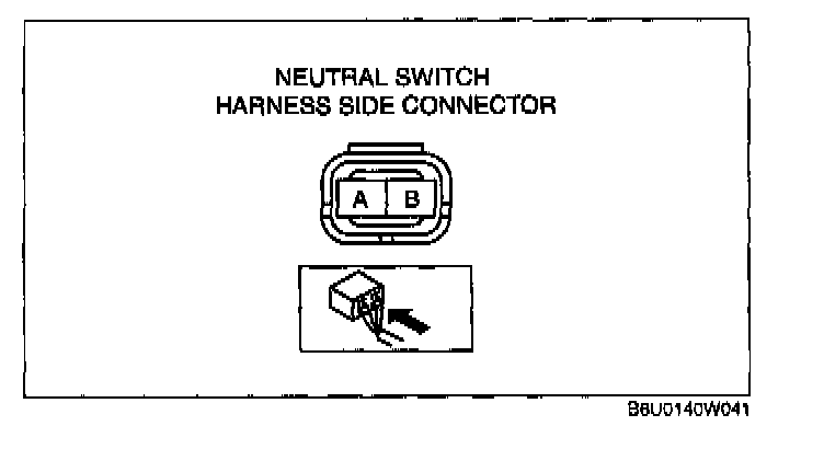 - Neutral switch terminal B (harness-side) and PCM terminal 1W (harness-side)
