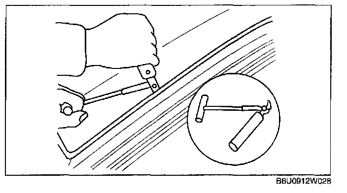 NOTE: For the areas of the sealant that are difficult to cut, use the SST (piano wire) and follow the procedure under "Reusing Glass."