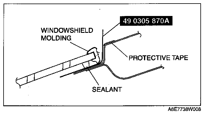 NOTE: Before removing the windshield from the body, mark the position of the windshield by affixing tape to the windshield and body panel.