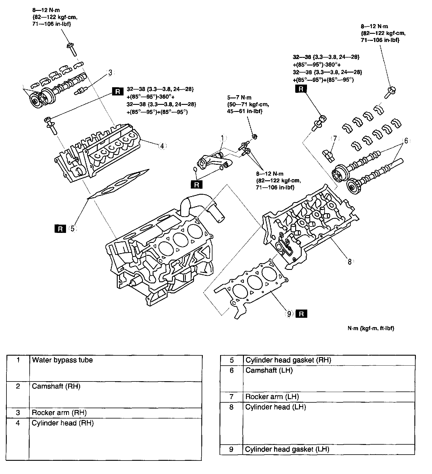 1) Tighten to 32 - 38 Nm (3.3 - 3.8 kgf-cm, 24 - 28 ft. lbs.).