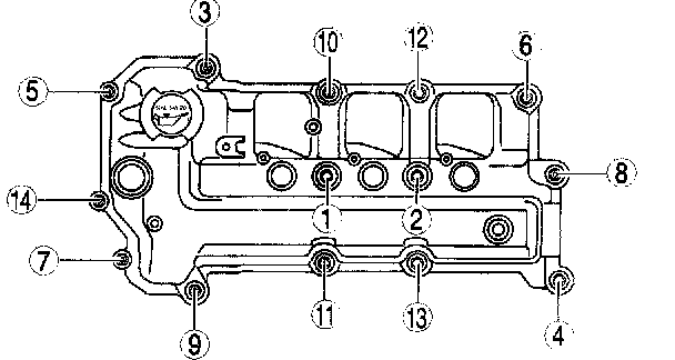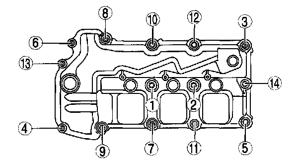Tighten the cylinder head bolts in the order shown using the following 6 steps.