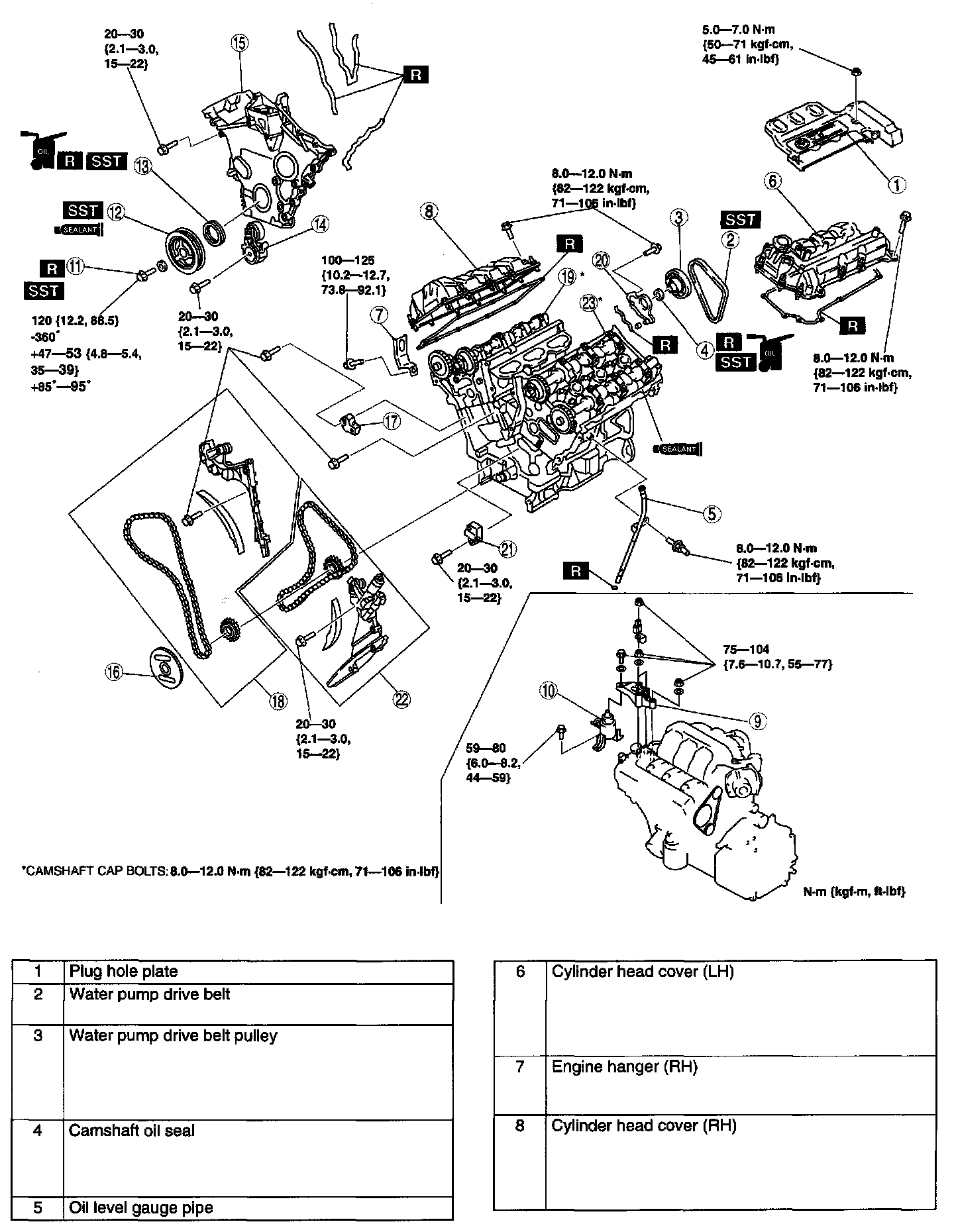 Loosen the remaining bolts 7-8 turns in the indicated sequence to allow the camshaft (LH) to rise