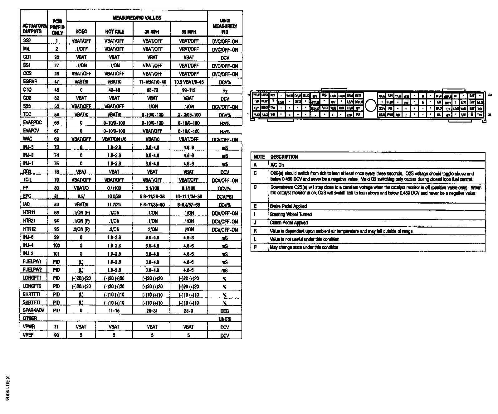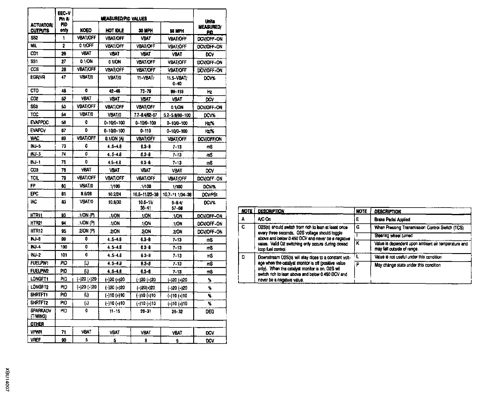 CAUTION: The "PID/DATA MONITOR AND RECORD" function is to monitor the the calculation value of the input/output signals in the PCM. Deviation in the value does not always indicate malfunction in the related devices. For inspection of the input/output signals other than in the link monitor table, check voltage at the applicable PCM terminal by using the SST (104 Pin Breakout Box).