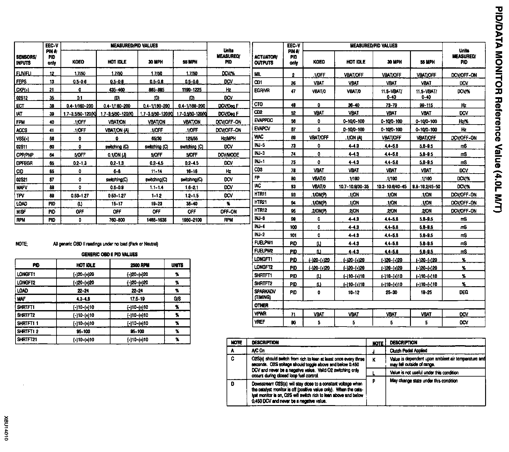 PID/Data Monitor Reference Value (4.0L A/T):