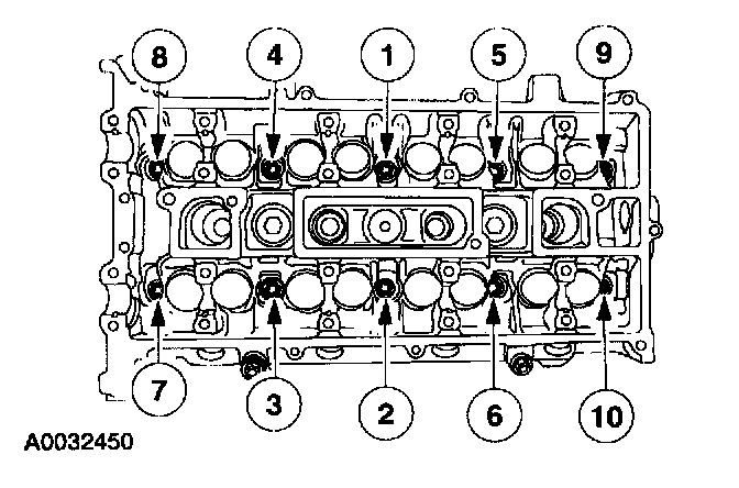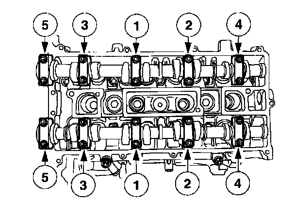 Stage 1; Tighten the camshaft bearing caps one turn at a time until tight.