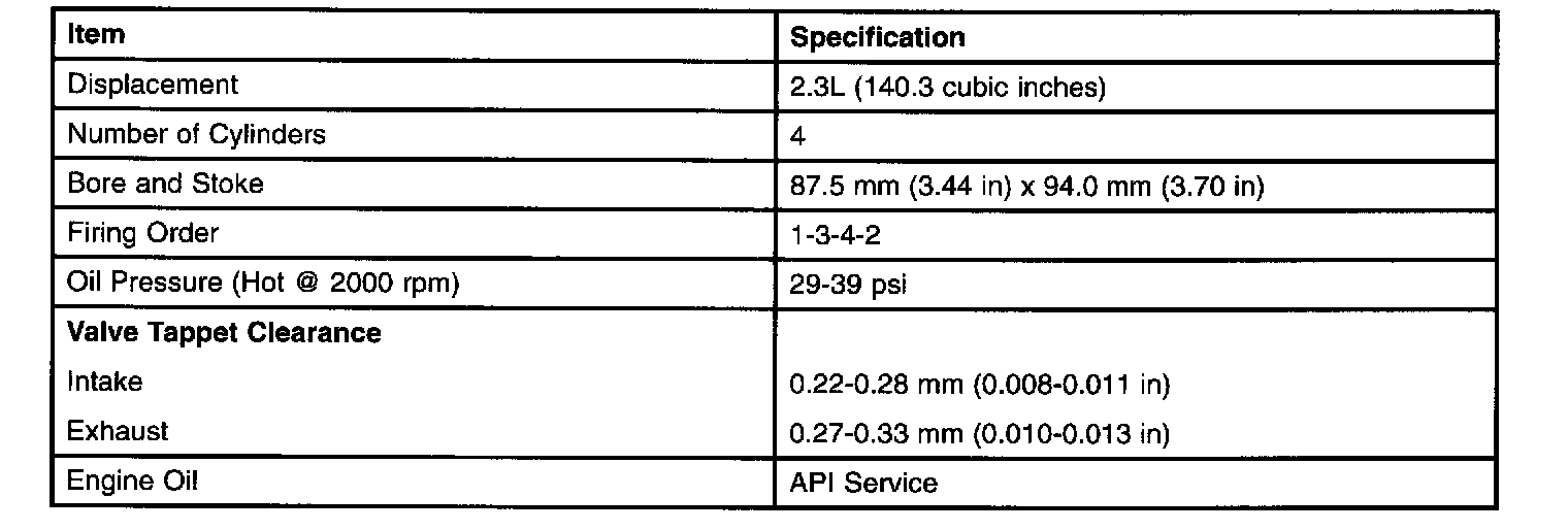 ENGINE SPECIFICATIONS-2.3L