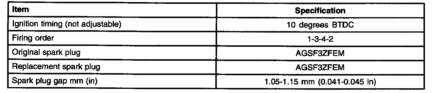ENGINE IGNITION SPECIFICATIONS-2.3L